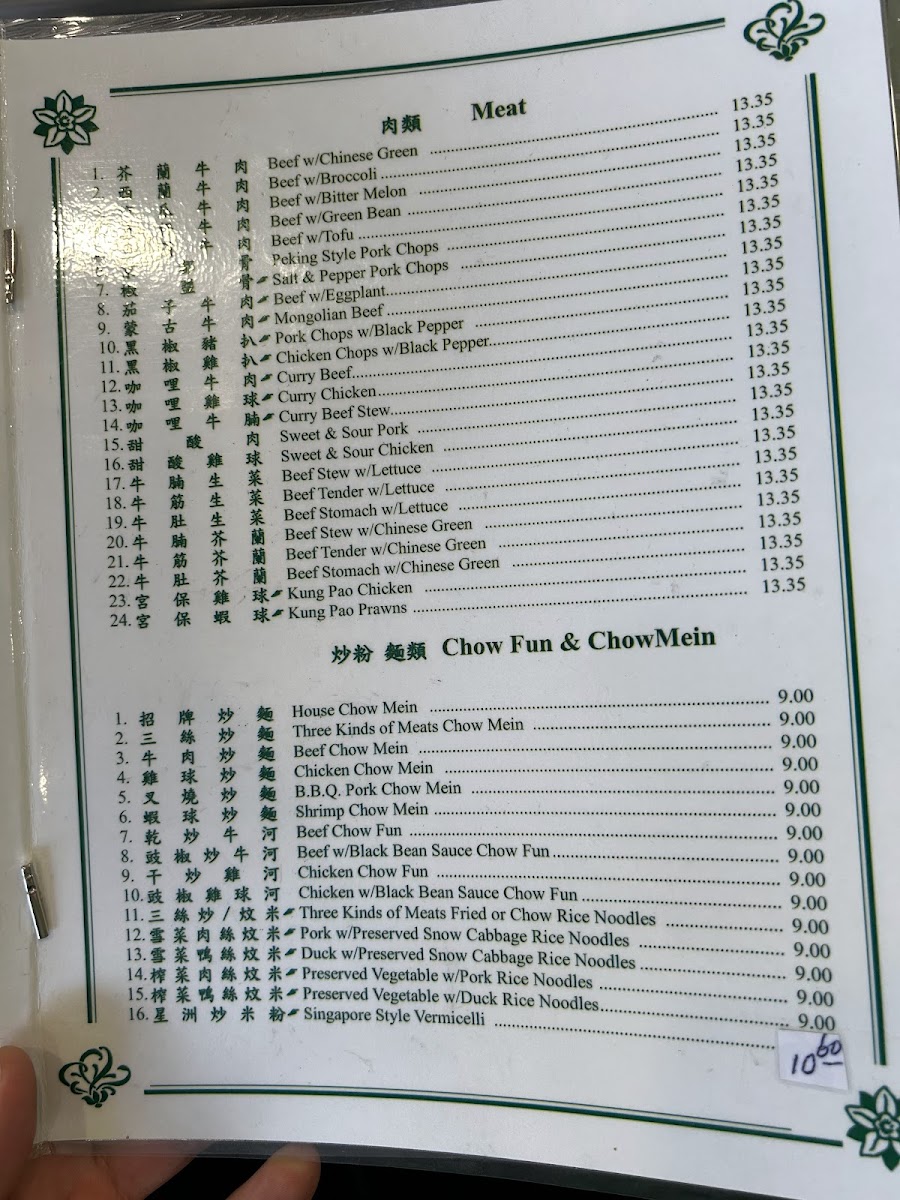 Choice of vegetables: Chinese Broccoli, Chinese Green, String Bean, Water Spinach, Bitter Melon